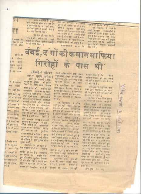 बम्बर्इ दंगे पर उस समय मुजफफरनगर के सांध्य दैनिक सदाशय में छपी एक रिर्पोट